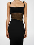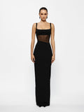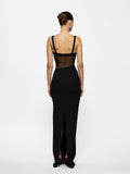 An ode to simplistic beauty and timeless dressing, the Cyia Gown is designed for modern elegance. Crafted from our stretch crepe that skims the silhouette, and detailed with a mesh insert on the body. Featuring delicate shoulder straps and a lower back to accentuate the feminine form. Cut with a split at the back to allow for movement.