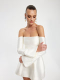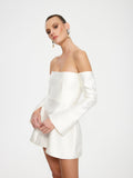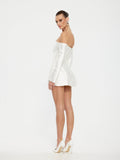 Our custom piece made for Lana Wilkinson. Featuring a delicate off-shoulder neckline and an open sleeve for the most elegant mini. Limited numbers, restocking 17th February. Available for immediate dispatch.