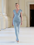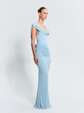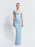 Architectural in line yet softened by our signature stretch jersey, the Steele Gown is an ode to modern dressing. Featuring a fitted bodice flows seamlessly into a sleek skirt, balancing strength with elegance. Cut with a beautiful subtle cowl that blends beautifully into a deep low back. Detailed with delicate ruching across the stomach for added comfort and support. In soft Aspen, Steele is made for formal receptions, red-carpet evenings, or quiet celebrations of presence.