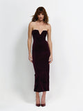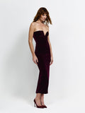 Made a statement this season with the Annora Dress. Crafted from our luxurious velvet fabrication, Annora features a strapless silhouette with a deep V neckline at the bust. Showcasing a bold plunging neckline and body hugging fit, Annora cinches at the waist whilst seamlessly falling into a mid-length hemline.