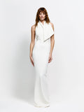 Elevate your event wear with the Carlson Dress, a beautiful blend of modern sophistication and elegant dressing. Carlson features an asymmetrical neckline with a draped detailing that falls across the bodice. Crafted from our luxurious crepe fabrication, Carlson is balanced with a dramatic open back for added sensuality and femininity. Flowing into an elegant floor-length hemline, Carlson embodies refined luxury and contemporary dressing.