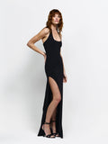 The Myla Gown blends modern design with understated elegance for an effortlessly feminine look. Featuring a deep scoop neckline and our classic figure hugging silhouette for a beautiful silhouette on the body. Myla is detailed with a subtle open back and a thigh split for a touch of sensuality. Crafted from luxurious stretch fabrication, this piece seamlessly transitions from intimate gatherings to sophisticated soirees.