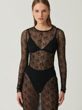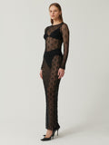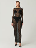 A hero capsule piece with a seasonal pattern detailing, we introduce our long sleeve lace maxi dress. Expertly crafted in a soft semi-sheer fabrication with a sleek and flattering silhouette. Wear with ease for your next event.