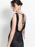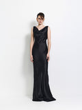 A sweeping low back adds a touch of dramatic simplicity, while the sleek black finish enhances its timeless, understated glamour. Minimal, refined, and endlessly versatile, the Athena Gown brings a quietly striking presence to any evening occasion.
