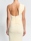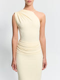 The Greer Gown, a standout floor length gown designed for the modern muse. Crafted with our signature stretch crepe, Greer features an asymmetrical one shoulder design with an open back. Delicately detailed with intricate ruching through the body and sculpted to fall beautifully on the body. The Greer Gown is made to take you through all your special occasions, from understated evenings to standout events.