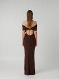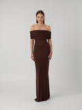 The Viela gown is designed with an off-the-shoulder neckline that wraps around your frame. The gathered panel creates a draped effect that twists in the back. Made from a luxe stretch-jersey that skims your frame and falls to a floor-skimming maxi hem. Wear yours with point-toe pumps and bold earrings.