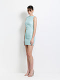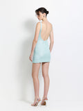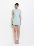 Radiating modern elegance and understated glamour, the Vienna Mini features a high boat neckline that gracefully frames the shoulders. Crafted in a low, icy blue with a subtle black undertone, this mini dress skims the body for a flattering, effortless silhouette. Perfect for evening soirées or celebratory nights, the Vienna Mini pairs beautifully with delicate heels and minimal accessories to let its sophisticated hue and sculpted cut take center stage.