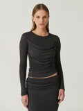 Longsleeve top with a gathered ruching detail through front. Made with our signature bamboo jersey for ultimate comfort and versatility.