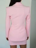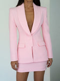 The epitome of feminine tailoring, the Cutaway Blazer inches the waistline and accentuates your curves. It features a strong shoulder and shawl lapel. The internal snaps make for a clean finish.