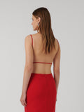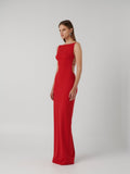 Referencing '90s styles with a modern twist, the Gabbi gown has an elegant square neckline and dainty shoulder straps framing the open back. Falling at a floor length hem, the Gabbi gown is the perfect gown for your next event paired with a strappy heel and a bold earing.