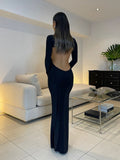 Our 'Imani' gown has an elegant, skin-baring cutout that frames your décolletage and upper abdomen; it elevates the otherwise minimal silhouette. Featuring a signature twist detail across the front, it's cut for close fit and features the same twist at the back neck above a perfectly cut back baring cut out. Cut on the bias, the gown hugs the body elegantly and the sleeves hit just above the knuckles adding eccentricity and edge.