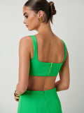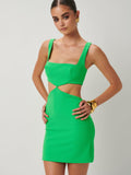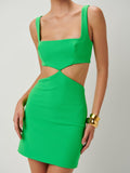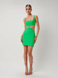 A classic piece, the 'Laia' mini dress is a more versatile design, made from flattering stretch crepe. It's designed with a close-fitting bodice that's cut into a triangle shape, joining the skirt from the waist. The square neckline and thick straps recall '90s styles.