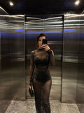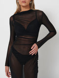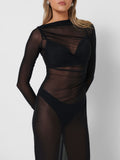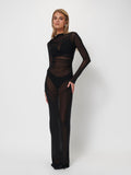 Our Mauve Maxi Dress is made from black mesh that's super stretchy and is perfect for layering over black high-waisted panties and a triangle-cut bralette. It's cut for a close, figure-hugging fit. Wear it with a pair of barely-there heels.