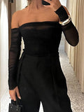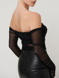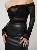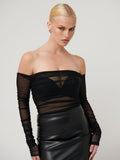 The 'Marin' mesh top has a folded neckline that elegantly sits off the shoulder. It's made from super soft stretch-mesh in a slim fit. The supple fabric will also keep the shape with plenty of wear.