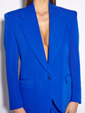 The Marinella blazer is in a Royal Blue hue that's endlessly versatile. It's tailored from medium weight viscose in a relaxed, single-breasted silhouette with notched lapels and a full lining that ensures it slips on easily. The shoulder pads give it some structure, too.