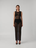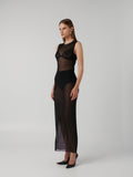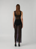 The Nova Mesh Maxi Dress has a crew neckline and is designed for a body-skimming fit. It is perfect for slipping on over a bikini or bodysuit.