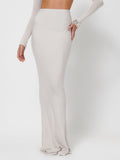 The 'Serena' skirt is meant to be worn with the matching top but works just as well with a sheer bodysuit or graphic tee. It's made from double layered bamboo stretch-knit and has a comfortable elasticated waistband and is bias cut for shape.