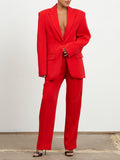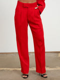 Cut for a loose fit with a tapered hem, these pants sit high on the waist and have front pleats. They're made from red wool and can be dressed up with a blouse and heels or a tshirt and sneakers