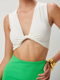 Our cropped 'Tara twist' top has a deep V-neckline and open front that exposes your midriff. It's made from black stretch bamboo-jersey that's gathered for shape. Wear yours with a pair of high-rise jeans or a crisp pair of linen shorts and a statement belt.