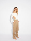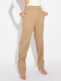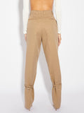 Cut from mid-weight stretch cotton drill, they sit mid waisted and have straight legs, the ankle strap detail offers a modern utilitarian edge.