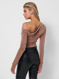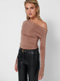 Our Tyler top has an asymmetric neckline that softly drapes across one shoulder. It cuts for a close fit from smooth slinky stretch jersey. This style is your new wardrobe staple to dress up or down.