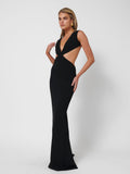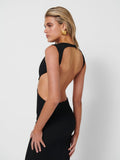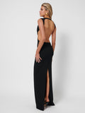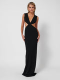 Our Valencia Gown is defined by the sharp V neckline and cutouts at the waist. Perfect for glamorous evening events, it's made from stretch scuba crepe that has a back split. Style yours with barely there metallic heels.
