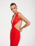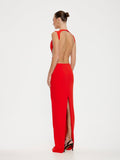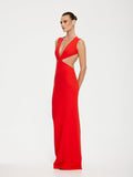 Our Valencia Gown is defined by the sharp V neckline and cutouts at the waist. Perfect for glamorous evening events, it's made from stretch scuba crepe that has a back split. Style yours with barely there metallic heels.