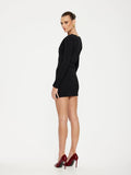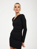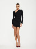 An elegant mini for the upcoming event season, featuring a statement neckline and delicate ruching through the body.