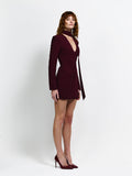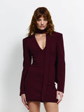 Welcoming the Bennett Mini, a perfect balance of bold tailoring and timeless elegance. Featuring sharp tailored lapels and a daring plunging neckline for a beautiful blend of masculine dressing with feminine allure. Elevated by sharp shoulder lines and a cinched waist, Bennett is finished with an elegant scarf detail that wraps around the neck. Perfect for all occasions, wear Bennett from boardroom to after-hours.