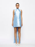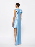 Welcoming the Jorja Mini, an ode to effortless elegance. Our fun and playful take on a mini dress, crafted in a luxurious heavyweight satin for beautiful feel on the body. Detailed with a statement bow at the neckline with a floor length train. Jorja features a sleek and minimal silhouette for a simple yet feminine finishing touch. Detachable bow.