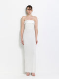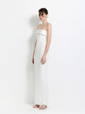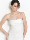 Introducing the Thalia Gown, this season's captivating vision of modern glamour. Featuring a timeless strapless silhouette, Thalia is crafted from our luxurious sequin fabrication. Elevated by a sleek satin band, Thalia flows into an elegant floor length hemline with subtle back split.