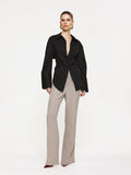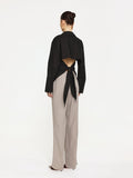 A classic white shirt with a modern twist, featuring an open back and tie detail. Our Brooklyn Shirt is tailored from a crisp cotton blend for the perfect blend of comfort and effortless style. For a timeless look, wear with our classic tailored pants and a kitten heel.