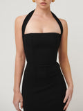 Our 'Meline' midi dress is so chic and flattering. It's cut for a body-hugging fit from stretch-crepe and has a halter neckline and back split so you can move freely. Wear yours with point-toe pumps, keeping accessories minimal.