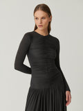 Equally timeless and versatile, the Aleia gown is made from smoothing double layered bamboo stretch-knit. With carefully constructed ruching and textural detailing, this gown is designed to offer elegance and elevation for all occasions.