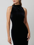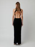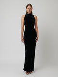 The Ambre gown looks simple enough from the front but the real drama is at the back - it's open and cut low for added elegance. It's made from black velvet that skims your frame and falls to a maxi hem.
