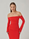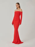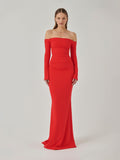 Featuring a streamlined, flattering silhouette with an off shoulder cut, our Anita Gown is made to impress for all occasions. Also available in black.
