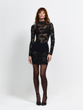 A beautiful blend of modern femininity and sensual dressing, we welcome the Lucca Bodysuit. Crafted from a delicate scallop lace, Lucca features floral lace that offers both allure and refinement. Featuring a sophisticated high neckline and elegant long sleeves, its intricate detailing embodies timeless femininity. Pair together with our coordinating Bledel Skirt and a pair of sheer stockings for a timeless evening ensemble.