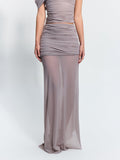Defined by soft structure and timeless femininity, we welcome the Posy Skirt. Cut at an asymmetric hem, it's clean cut flatters while remaining effortlessly poise. Delicately draped with ruching across the hips and lower body, Posy seamlessly drapes and falls to a floor length cut. Designed to pair with our matching Zita Bodysuit or wear together with your favourite top, Posy is a wardrobe staple for both everyday refinement and evening poise