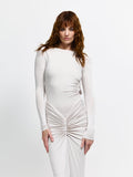 A new addition to our range, we welcome the Raya Bodysuit. Crafted from a luxuriously soft bamboo fabric, Raya features elegant long sleeves and artful ruched detailing across the central bodice that seamlessly blends into a dramatic low back. Made to be a wardrobe staple, Raya is effortlessly versatile. Pair together with our Kayson Skirt for an elevated ensemble or your favourite denim for a refined casual night out.